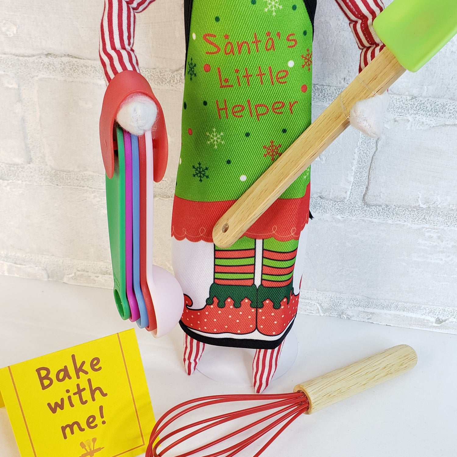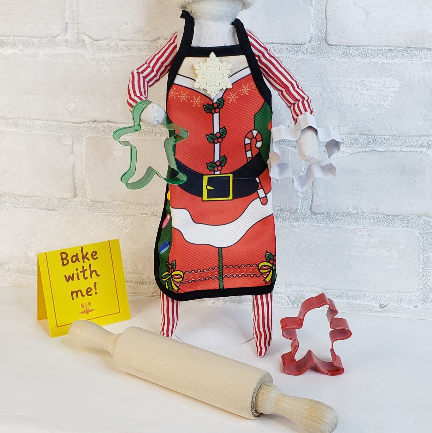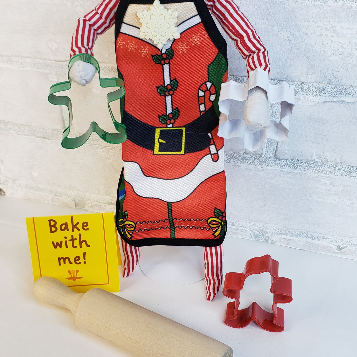 Is baking on your holiday bucket list? Get the elf involved to announce Baking Day! Put these out with the recipe and ingredients. This set can be reused year after year! And the apron can be reused this season, for any kitchen/cooking/baking setup!