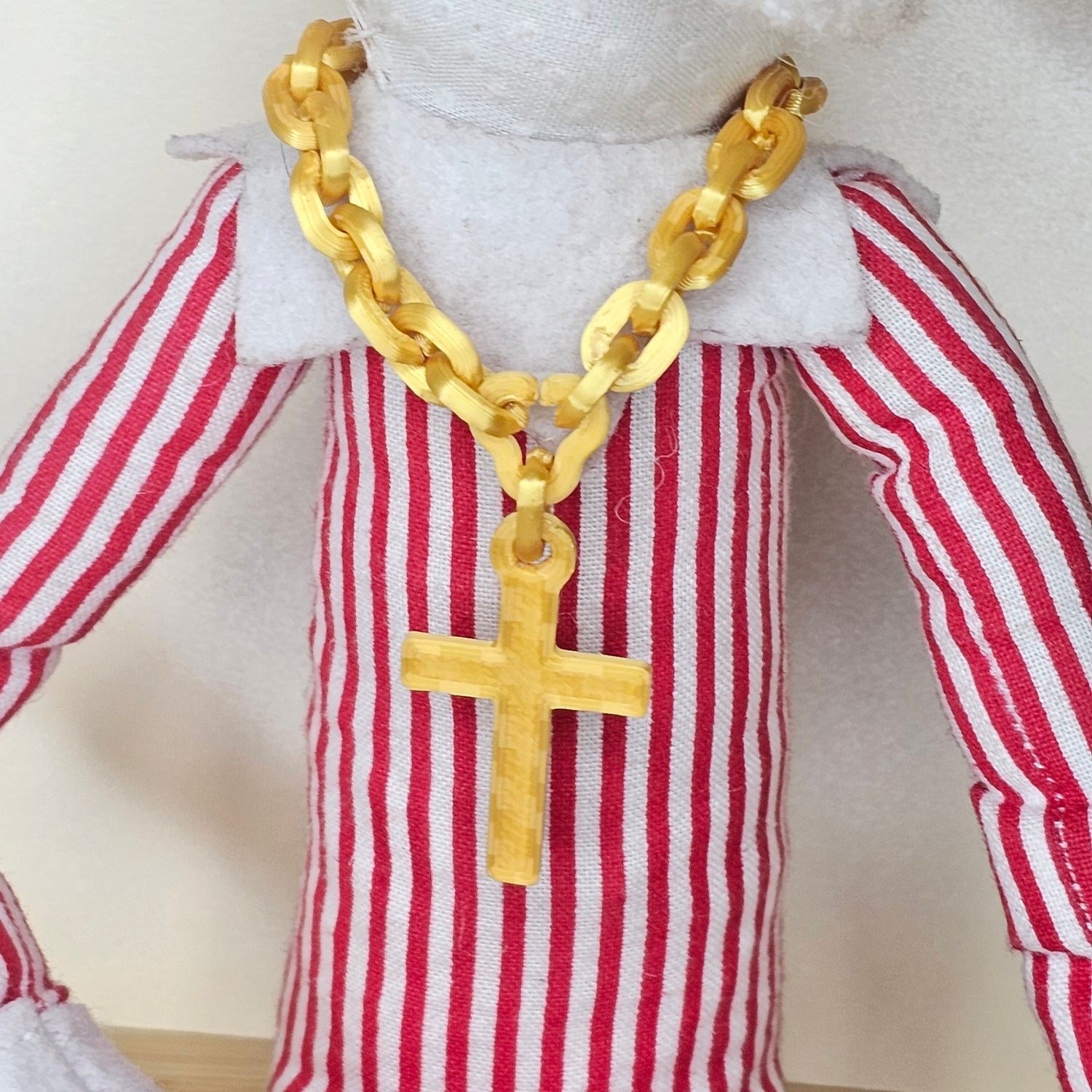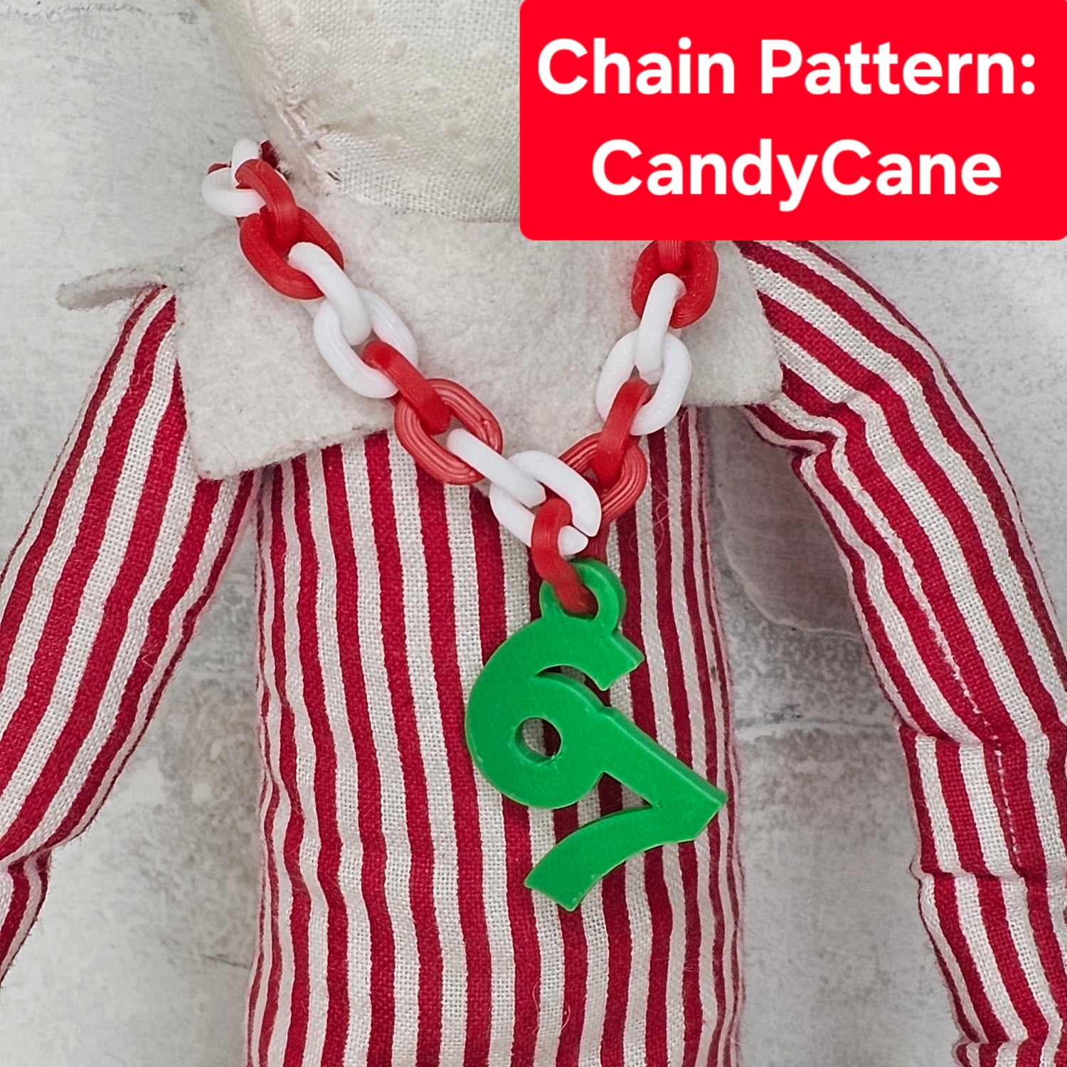 Are we tired of hearing "six sevennnn" yet? We might be, but it's not going away before Christmas, so your elf might as well hop of the shelf and onto this trend! This hype chain with 67 charm, full of Christmas magic and Elf swag, was 3D printed to fit any 12" (or similar) elf or doll. You can adjust sizing for smaller elves by removing links. Get your elf some drip for the season!